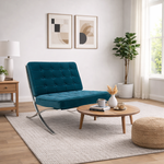A striking fusion of modern design and timeless elegance, the BARCO Occasional Chair offers a sophisticated accent for any interior. Upholstered in a rich teal fabric, this statement chair introduces vibrant colour while maintaining a refined, architectural silhouette suited to both contemporary and classic spaces.
