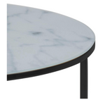 The round Alisma Coffee Table in black is 800 diameter, which is suitable for enjoyable dining with 4-6 people. The tabletop has a thickness of 25 mm and is lacquered in matt black.