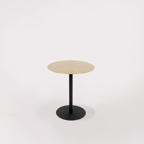 This solid side table looks elegant and luxurious due to the metallic top and narrow pod base.