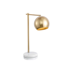The Etta Table Lamp Featuring a brushed gold globe with a white marble base with a directional light source that lets you direct the light where you need it most.