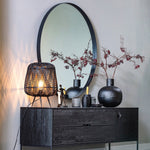 The black thick-framed round mirror can be a stylish and bold addition to your home decor which adds a touch of drama and can serve as a focal point in the room.